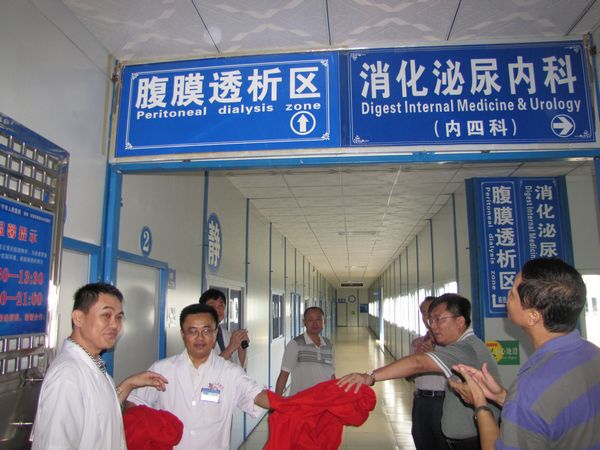 7月16日,我院腹膜透析区经过半年多的精心筹建,正式开张。卫生局陈西虎副局长、我院院领导及各临床科室主任、护长出息了腹膜透析区揭牌仪式。