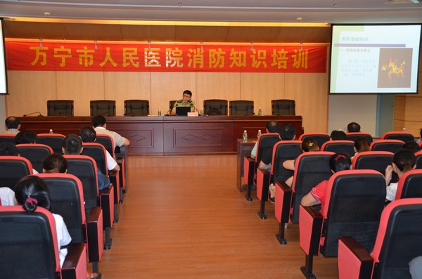 市消防大队邢敏参谋结合近年卫生系统的火灾案例给参训人员上了一堂内容丰富、生动的消防知识课。详细介绍了医院重点科室、重点部位可能存在的消防隐患,同时对如何加强医院日常的消防管理、消防检查、如何正确使用医院配置的消防器材、如何安全扑救初起火灾、如何组织病人疏散逃生、如何正确报火警等内容进行了详细的讲解。