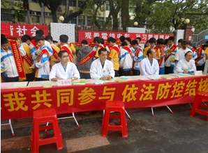 2014年3月24日是第19个“世界防治结核病日”,宣传主题是:“你我共同参与,依法防控结核”。为了让结核病防治知识家喻户晓,提高人民群众结核病防治知识知晓率,动员全社会参与和关注结核病控制工作,在“3.24世界防治结核病日”来临之际。按照上级有关要求和统一部署,我院与市卫生局健康教育所、市结核病防治所共同在万宁中学大门对面的街道举办世界防治结核病日主题宣传活动。
