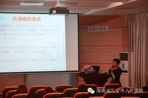 美丽的三月,女人的季节,春意浓浓。在“三八妇女节”前夕为了迎接“三八妇女节”到来,万宁市人民医院于2015年3月6日(星期五)下午15时,在我院第三会议室举办了“关爱女性,预防两癌”的公益讲座,特邀请了本院妇产科翁应纯副主任进行专题讲座。在长达1个半小时的讲座中,翁应纯副主任介绍了女性的生理构造,讲述如何预防一些常见的妇科疾病。针对乳腺癌与子宫颈癌已成为女性健康的两大杀手的问题,对如何防治“两癌”进行了详细的讲解,现场讲解如何早发现早预防的方法,提高“两癌”预防知识知晓率,减少“两癌”的发病率。同时,向她们传授保健知识,为广大妇女提供生理健康、心理疏导等方面的咨询。提醒各位女性一定要保持良好的心态,引导她们用健康的体魄和积极的心态创造幸福美满的生活。