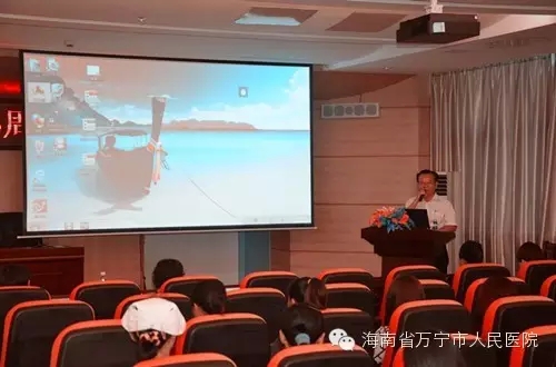 (图为:妇产科翁应纯副主任在进行专题讲座)